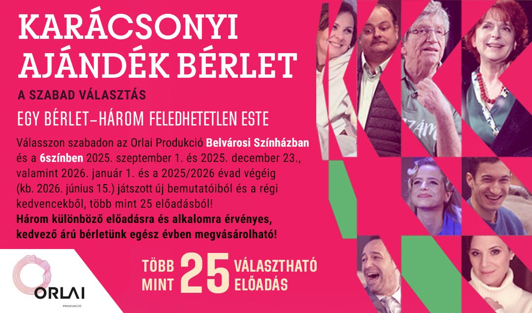 A bérletek kizárólag a Belvárosi Színházban és a 6színben játszott Orlai Produkciós Iroda-előadásokra válthatók be.